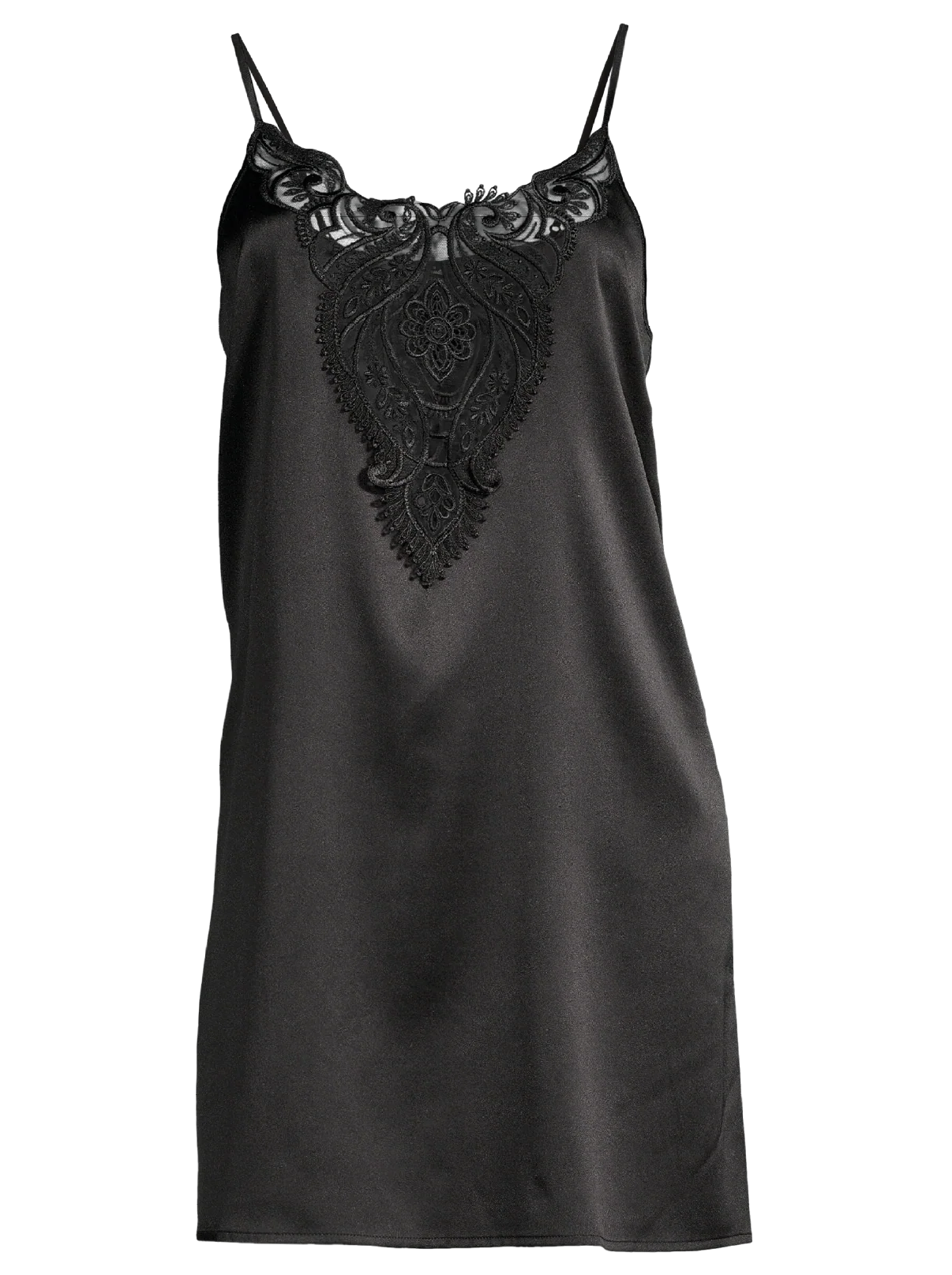 Slip dress made of a delicate stretch silk satin with macramè motif on tulle,
