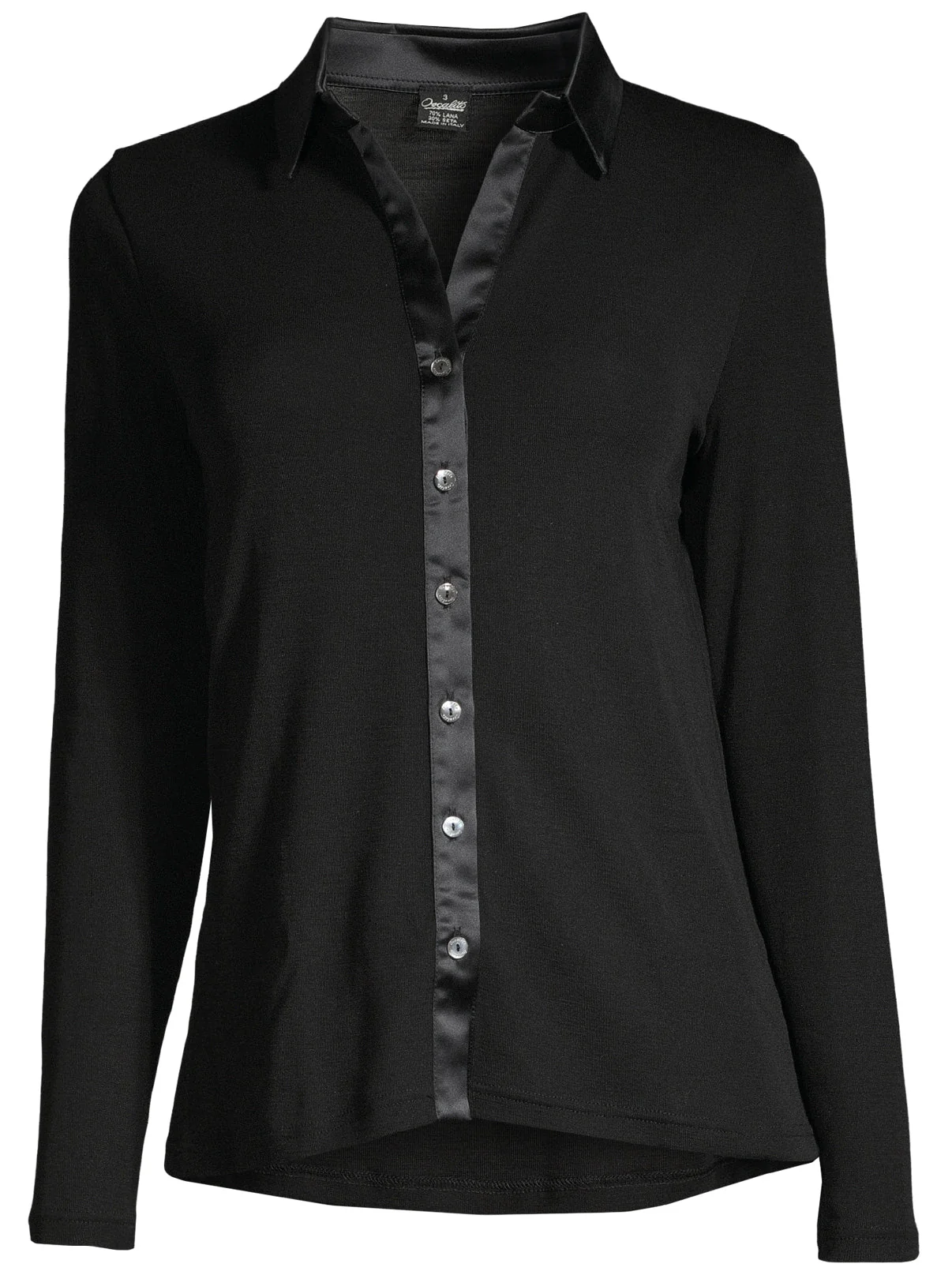 Longsleeve chemise made of a precious and natural intimate blend of Merino extra fine wool and top quality pure silk with sleek satin collar,